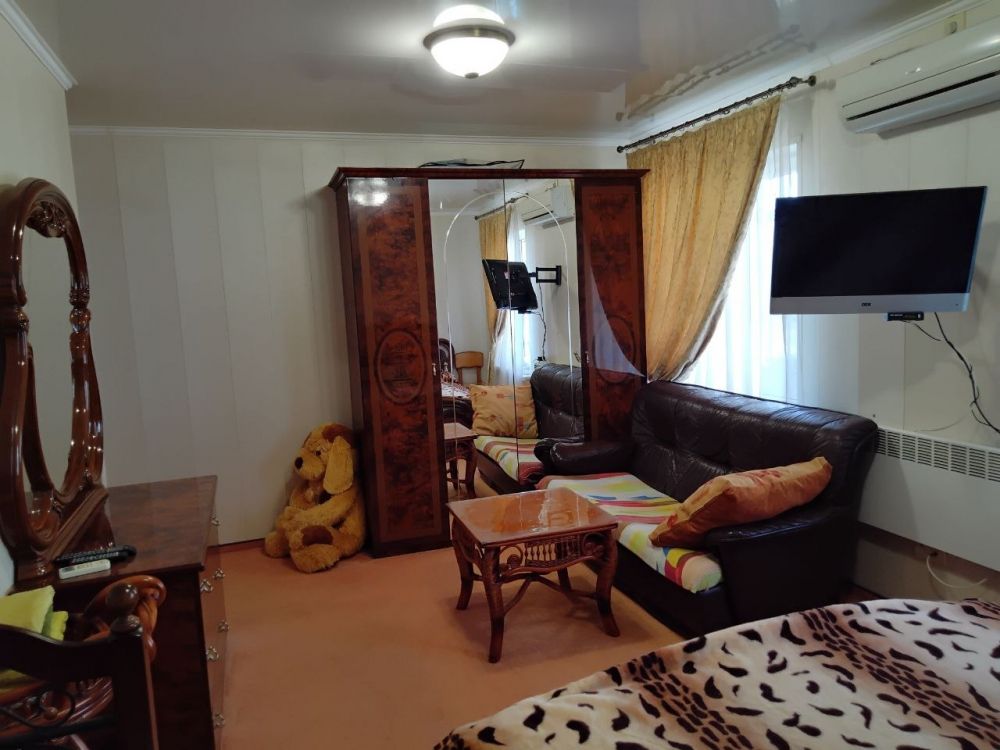 На 2-м этаже находятся 4-ре номера,в трёх своя кухня.Номер 5 состоит из 2-х комнат( 20м.кв. и 11 м.кв. с кухней).В большой комнате спальный гарнитур,двуспальная и односпальная кровать,диван.ТВ,кондиционер.Во 2-й комнате кухня,оборудована всем необходимым,угловой диван,стол,стулья.Туалет,душ с круглосуточной горячей водой.Вода привозная