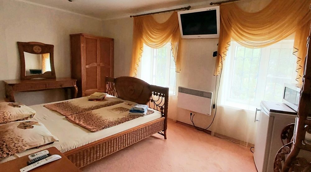 На 2-м этаже находятся 4 номера,в трёх своя кухня.Номер 6-Элит,площадью 16 м.кв.с мебелью из ротанга,шкаф,горка,стол,стулья ,двууспальная кровать 1,8x2.Вид на море.Туалет,душ с круглосуточной горячей водой.Вода привозная.